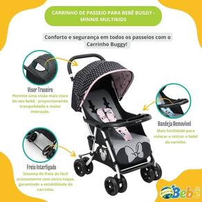 Carrinho de passeio para bebê tipo berço buggy minnie multikids O carrinho de bebê buggy foi pensado para os pais que buscam praticidade, sem abrir mão de conforto e segurança no dia a dia. Com um design moderno e funcional, ele traz tudo o que você precisa para tornar os passeios com seu pequeno ainda mais especiais. Super estiloso e prático, ele possui estrutura leve e resistente, com um sistema de fechamento envelope simples, que o deixa super compacto e fácil de transportar ou armazenar quando não estiver em uso. A capota retrátil, composta por 3 seções, possui camada dupla estampada, oferecendo proteção eficaz contra o sol e a chuva. Ela também possui visor, que permite uma visão clara e privilegiada do bebê, além de assegurar o conforto em qualquer clima. Já o apoio de pés é ajustável em 2 alturas, e a bandeja com porta-copos é removível, facilitando o processo de colocar e retirar o bebê do carrinho, tornando-o ainda mais funcional. Além disso, as 4 rodas são duplas, em eva de 14 cm de diâmetro, para garantir maior estabilidade. As dianteiras são giratórias com trava, e as traseiras equipadas com freio conjugado para maior segurança. Acompanha par de adaptadores para travel system compatível com o bebê conforto disney baby bb420 vendido separadamente , para uma transição perfeita do carrinho para o carro, sem perturbar o soninho do bebê. Principais características: - idade recomendada: do nascimento até 15kgs - peso máximo suportado: 15kgs - modelo: buggy minnie - design estiloso disney - ideal para passeios diários e viagens - garante praticidade, segurança e conforto - cinto de segurança de 5 pontos com ajuste de altura e largura - encosto reclinável em múltiplas posições - assento largo e confortável com 34cm de largura - reclina até a posição berço - reclina até a posição vertical - fechamento simples envelope - bandeja com porta-copos removível - capota retrátil com 3 seções - apoio de pés ajustáveis em 2 alturas - cesto porta objetos amplo - estrutura leve e resistente - fácil armazenamento e transporte - acompanha par de adaptadores para bebê conforto - compatível com bebê conforto bb420 vendido separadamente - aprovado pelo inmetro Especificações técnicas: - conteúdo da embalagem: 1 carrinho de passeio buggy multikids + par de adaptadores + manual de instruções. - dimensões do produto aberto axlxp : 48,0 x 58,0 x 97,0 cm - dimensões do produto fechado axlxp : 90,0 x 48,0 x 29,0 cm - composição/material: aço, eva, polipropileno, poliéster, pa e pom - peso: 5,100kgs - : 6 meses contra defeitos de fabricação pelo fabricante - certificação: inmetro 10689/2024-cac-1 abnt nbr 14389:2010 - código do fabricante: bb496 - ean: 7908842808835 - marca: multikids Imagens meramente ilustrativas. As cores e estampas podem variar de acordo com o lote do fabricante. Homologação Inmetro: CE-BRI/IQB 002295 54761/21-023