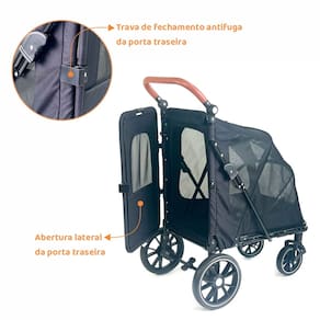 O carrinho de passeio é uma solução segura e confortável para o dia a dia do seu pet.