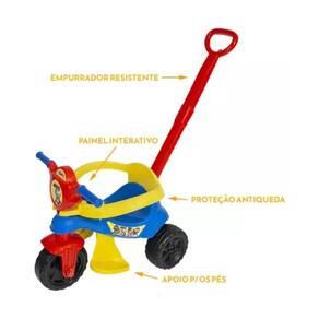 Carrinho de Passeio Pedal Haste Infantil Triciclo Dog Azul Carrinho de Passeio Pedal Haste Infantil Triciclo Dog Azul ============================================================ Ideal para crianças que estão começando a explorar o mundo ao seu redor, este carrinho combina praticidade, segurança e diversão em um design encantador Multifuncional pode ser Utilizado tanto como um passeio para os pequenos que ainda não pedalam sozinhos quanto como um pedal para crianças que já estão prontas para pedalar e se divertir de forma independente. A transição entre as duas funções é simples e prática, garantindo horas de diversão e exercício. As rodas são projetadas para garantir estabilidade e suavidade ao caminhar, proporcionando um passeio tranquilo para a criança. ============================================================ Contém: 01 Unidade Especificação: - Material: Plástico e Adesivo - Medida: 43cm x 33cm x 60cm - Suporta até 16 Kilos - Com Pedal - Com Haste pra Empurrar - Com Alça de Segurança - Proteção Lateral Removível - Apoio para os Pés Removível - Painel Interativo - Indicado para Crianças Acima de 18 Meses - Cor Principal Azul com demais peças enviada de forma aleatória conforme disponibilidade em ============================================================ Devido à diferença entre monitores e iluminação diferentes, pode haver variação na tonalidade apresentada no anúncio. Medidas muito aproximadas. Homologação Inmetro: CE-BRI/IQB 006429 55316/22-001
