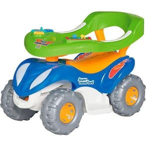 Carrinho De Passeio Super Comfort Para um passeio super confortável e divertido! Carrinho super confortável, colorido e seguro para passear O bebê se diverti com as atividades didáticas no aro protetor, sendo um brinquedo 2 em 1! A proteção e o apoio para os pés são removíveis. O volante gira e o bebê pode brincar desenvolvendo a coordenação dos movimentos e impulso O carrinho possui buzina e o assento ainda levanta para guardar acessórios e brinquedos. Peso: Suporta até 30 kg Recomendado para crianças a partir de 01 ano. Material: Plástico Tamanho aproximado: 66cm (C) x 40 cm (L) x 44 cm (H) Peso do carrinho: 3.704kg Cor: Azul/ Verde Itens Inclusos: 01- Super Comfort 01- Aro protetor 01- Haste 01- Puxador 01- suporte para os pés 01- Protetor antitombo Imagens meramente ilustrativas