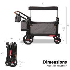 O Atlas Stroll N Wagon é um vagão versátil que oferece 3 modos diferentes de assento para dois passageiros: transporte e assento corrido. Ele possui uma alça de puxar NeverFall na frente e um guidão dobrável e ajustável com uma alça de couro vegano premium na parte traseira. As rodas de borracha com rolamentos proporcionam um passeio suave. O porta-pais XL incluso possui 2 porta-copos isolados, uma bolsa de armazenamento com zíper para manter pequenos itens seguros e um compartimento central com tampa magnética. A bolsa de armazenamento traseira funciona como uma bolsa conveniente com alças quando removida do vagão.