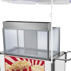 Seu Carrinho de Pipoca é equipado com pipoqueira e o sistema de vidros laterais e frontais permite a visualização da pipoca fabricada.