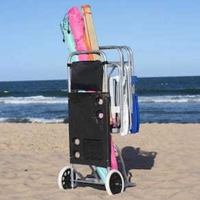 Carrinho De Praia Alumínio Multiuso Com Mesa Porta Copo Bolsa Facilite o transporte de seus acessórios de praia com o Carrinho de Praia Bel, um item indispensável para quem busca conveniência, resistência e funcionalidade. Projetado para tornar seus momentos ao ar livre ainda mais agradáveis, ele permite carregar cadeiras, guarda-sóis, bolsas e outros itens essenciais sem esforço. Além disso, sua estrutura versátil possibilita transformá-lo em uma mesa de apoio com porta-copos integrado, agregando ainda mais praticidade ao seu dia na praia, no camping ou em qualquer passeio. Fabricado com estrutura 100% em alumínio, o Carrinho de Praia Bel é leve, resistente à maresia e fácil de transportar. Suas rodas de EVA com aros em polipropileno PP garantem deslocamento suave em diferentes tipos de terreno, como areia, grama e asfalto. Acompanha ainda uma bolsa em tecido Oxford com zíper, ideal para guardar pequenos objetos e manter seus pertences sempre organizados. Vantagens do Carrinho de Praia Bel:Estrutura em alumínio: Material leve, resistente e durável, ideal para suportar até 15 kg.Multifuncionalidade: Além de transportar itens, pode ser como mesa de apoio com porta-copos embutido.Rodas em EVA com aros em PP: Facilitam o deslocamento em terrenos arenosos, irregulares ou gramados.Bolsa organizadora: Confeccionada em tecido Oxford, permite armazenar objetos menores com praticidade.Peças plásticas reforçadas: Componentes em polipropileno garantem maior resistência e vida útil prolongada.Ideal para diversas ocasiões: Perfeito para praia, camping, parques, pescaria, piqueniques e lazer ao ar livre. Com o Carrinho de Praia Bel, você ganha mais mobilidade e conforto para curtir seus dias ao ar livre sem preocupações