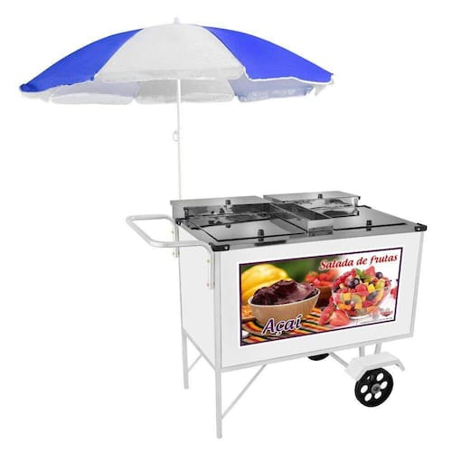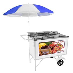 Carrinho de Salada de Frutas e Açaí com Guarda Sol e Rodas Maciças