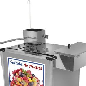 Esse Carrinho é fabricado com estrutura em aço carbono e chapa de inox 430, possui caixa para mantimentos e reservatório térmico para condicionar suas saladas de frutas e fazer boas vendas. Além disso acompanha um incrível adesivo, guarda sol para dias ensolarados e chuvosos e sistema de rodas pneumáticas podendo ser transportadora por ruas, calçados, paralelepípedos ou até mesmo na praia, fazendo sua salada de frutas ser conhecida em todos os lugares!