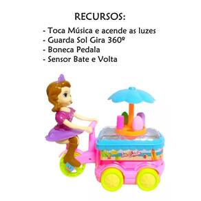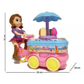 O Carrinho de Sorvete Princesa Sofia é mais do que apenas um brinquedo bonito. Ele é equipado com luzes vibrantes, música cativante e ação de bate e volta, tornando a brincadeira ainda mais empolgante. Enquanto a Boneca Sofia pedala e toca música, o guarda-sol gira e as luzes piscam, criando um ambiente mágico e animado que certamente vai encantar as meninas.
