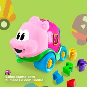 Carrinho Didático - Baby Land - Bolopótamo Números - Cardoso Toys: o Bolopótamo é um brinquedo muito divertido e interativo. Auxilia no desenvolvimento motor e cognitivo, estimula a criatividade e o conhecimento de cores e formas. Detalhes: • Com 5 números e 1 bolinha • Com escorregador de bolinhas • Braille presente nas peças e no corpinho • Relevos no casco que auxiliam no desenvolvimento do tato • Cabeça abre e fecha para guardar as pecinhas • Rodinhas com patinhas em relevo. Informações: • Produto: Carrinho Didático Bolopótamo com números • Marca: Cardoso Toys • Coleção: Baby Land • Tipo: Carrinho de brinquedo com Encaixes e Atividades • Categoria: Brinquedos para Bebês • Subcategoria: Carrinhos, Veículos e Cia Baby • Conteúdo: - 01 Carrinho - 01 Bolinha - 05 Números • Recomendação: para bebês a partir de 18 meses de idade Especificações: • Referência: 3062 • Código de Barras: 7896484130622 • Embalagem (C x A x L): 25 x 26 x 18 cm • Embalagem (Peso): 0.872 kg • Material / Composição: Plástico • Registro: 09265-50/2021 • Certificado: Órgãos Autorizados - OCP´S (Organismos de Certificação de Produtos) Aviso: • As imagens são meramente ilustrativas • Os pesos, tamanhos e medidas são aproximados • As cores e estampas dos produtos podem ter variações • As informações são de responsabilidade do fabricante ou fornecedor