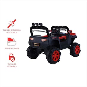 -bateria 12v potente -faróis de led multicoloridos -som com entrada usb, aux/p2 e buzina divertida -trava de segurança para proteção extra -marcha ré para manobras radicais