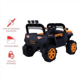 -bateria 12v potente -faróis de led multicoloridos -som com entrada usb, aux/p2 e buzina divertida -trava de segurança para proteção extra -marcha ré para manobras radicais