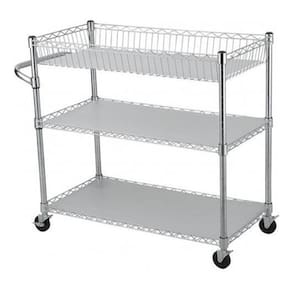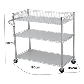 Carrinho Em Aço Gourmet Restaurante Hotel Casa Churrasqueira Carrinho de aço cromado durável de ótima qualidade Suporta até 226 kilos de carga Rodas sólidas de 10,16 cm PVC resistente 3 Prateleiras ajustáveis Cobertura das prateleiras em polipropileno Ean: 7897570196867