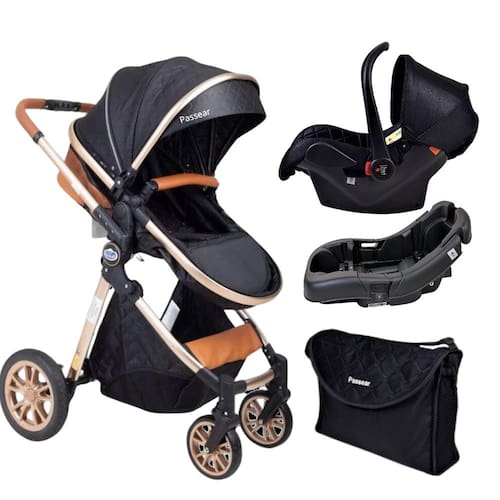 Carrinho Europeu Luxo Com Bolsa Ares Preto + Bebe Conforto E Base - Passear Baby