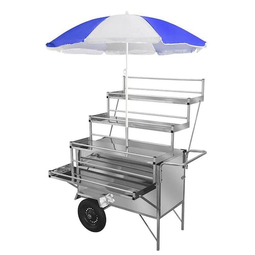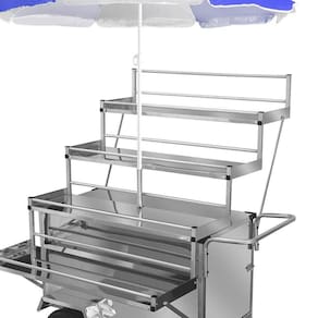 Acompanha guarda sol para dias ensolarados e chuvosos, sendo esse o modelo ideal para venda ambulante!