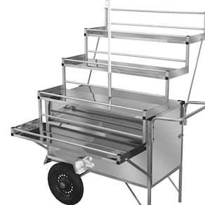 Ideal para ambulantes, o Carrinho expositor é pratico e com ele é possível fazer a venda de brinquedos, legumes, pães, roupas, frutas e dentre outros produtos!