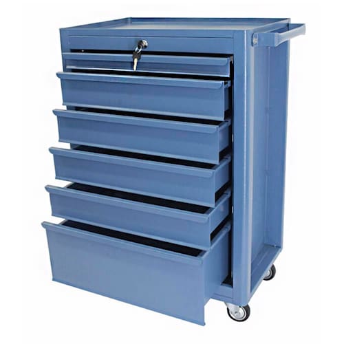 - Características: Estrutura em aço carbono com pintura eletrostática a pó. 5 gavetas chaveadas: 4 do modelo B e 1 do modelo A, com capacidade de 15 kg cada e abertura de 200 mm. Puxador ergonômico para facilitar o manuseio. Rodas: 2 fixas de 3" (RM-83) e 2 giratórias de 3" (RM-95). 1 prateleira fixa para armazenar itens maiores.