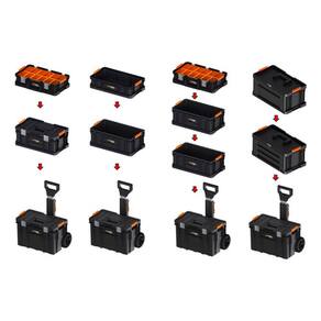 Este produto tem um tamanho de 78 litros e aguenta até 78 quilos, sendo mais que o suficiente para vários tipos de trabalhos. Mas a principal vantagem do Carrinho Modular 67x38x52,6cm 78L Dexter Pro é seu sistema móvel expansível, de 3 peças. Essas 3 peças se conectam da maneira que você desejar, por clipes fáceis de montar, sendo altamente personalizável e alterando o modo de transporte das ferramentas e acessórios.