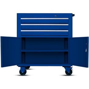 Carrinho Para Ferramentas Com 3 Gav. 2 Portas Rll316 Rotterman Produto: Carrinho para ferramentas com 3 gavetas e 2 portas Marca: Rotterman Cor: AzulDescrição: O Carrinho para ferramentas com 3 gavetas e 2 portas da Rotterman é perfeito transportar e armazenar ferramentas em setores como: oficinas, centros automotivos, galpões entre outros. O RLL-316 possui tratamento antiferrugem e pintura de alta resistência epóxi à pó que garante uma pintura de qualidade muito mais resistente. O Carrinho é equipado com alça para puxar/empurrar, 3 gavetas, 2 portas, 4 rodízios de 5”, 2 fixas e 2 giratórias, sendo uma delas com freio. Características: • Pintura epóxi à pó de alta resistência: Garante maior durabilidade e resistência à corrosão;• Tratamento antiferrugem: Previne a corrosão e aumenta a vida útil do produto;• Alça ergonômica para facilitar o transporte: Permite um manuseio mais confortável e seguro do carrinho, tanto para empurrar quanto para puxar;• Três gavetas e duas portas: Oferece amplo espaço para organizar ferramentas e acessórios de diferentes tamanhos.Especificações: Capacidade: 130Kgs Cor: azul.