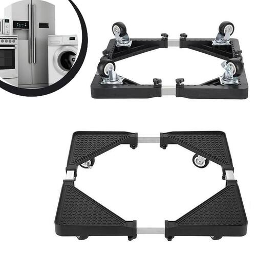 Base suporte especial com rodinhas para fácil locomoção de objetos pesados, como geladeiras, freezers, lavadoras de roupas, lava louça, fogões, armários, arquivos, entre outros, facilitando o deslocamento em todas as direções, permitindo a limpeza e manutenção dos produtos.