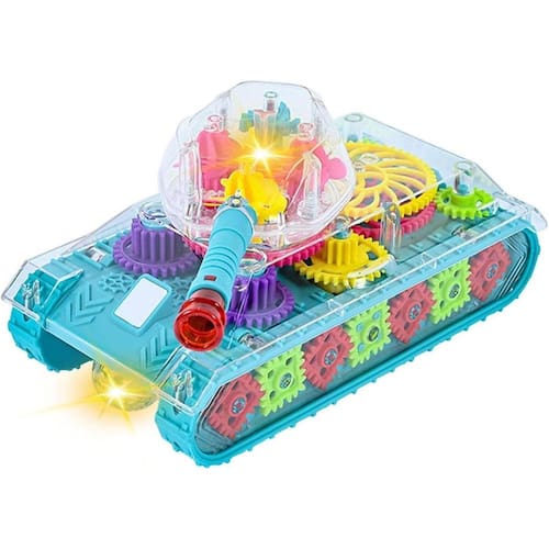 Os sons realistas de tanque de guerra estimulam a criatividade e a imaginação das crianças, levando a brincadeira a outro nível. E com a estrutura transparente, as crianças podem ver as engrenagens coloridas em ação, estimulando o aprendizado sensorial.
