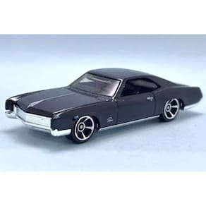 O '66 Buick Riviera na cor preta é um modelo Hot Wheels que faz parte da série HW Modified e costuma ser lançado em lotes anuais, como o de 2025. Ele se destaca por ser uma miniatura do clássico carro americano, com um design customizado, na escala 1:64, feito em metal Die-cast liga de zinco com detalhes em plástico.
