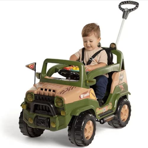 Seu desing é inspirado nos jipes de verdade, com detalhes que encantam e transportam os pequenos para o mundo da imaginação.
