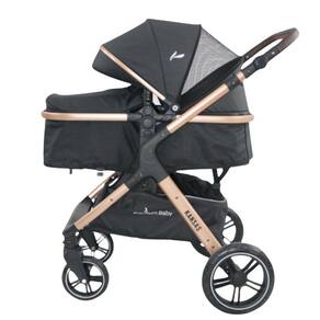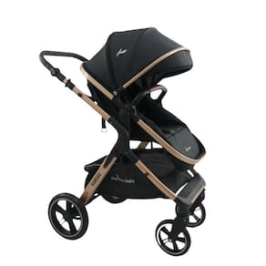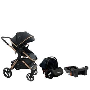 Carrinho Kansas Gold Preto com Bebê Conforto e Base - Premium Baby