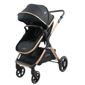 Características Técnicas: Cor predominante: gold / preto Peso máximo recomendado: 15 kg 4 em 1: carrinho com assento virado para os pais e virado para o mundo, vira moisés + bebê conforto + base para outro Capota expansível Cobre pernas Cinto de segurança de 5 pontos acolchoado Manopla com regulagem de altura Freio na roda traseira é acionado com os pés