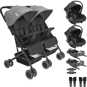 Carrinho de Bebê Kiddo Mascote Gêmeos com 2 Bebê Conforto Colinho e 2 Base para Carro ISOFIX Colinho