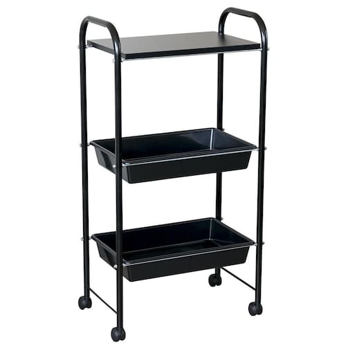 Carrinho Mesa Auxiliar 1 Tampo E 2 Bandejas Estética Preto
