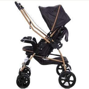 A capota retrátil e removível garante proteção contra sol e vento, enquanto o sistema de fechamento com desarme automático do encosto torna o carrinho mais fácil de guardar. Além disso, conta com bandeja frontal com porta-copos, tecido lavável, cinto de 5 pontos com protetores de ombro e rodas dianteiras giratórias, tudo projetado para oferecer uma experiência completa.