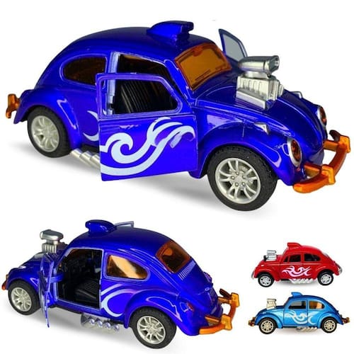 Produzido com metal de alta qualidade, detalhes no interior e rodas de borracha que se movimentam com fricção.