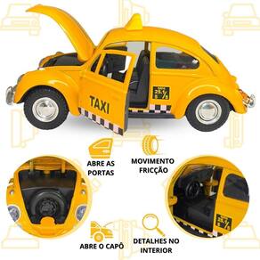 Carrinho Miniatura Fusca Taxi De Metal Abre As Portas E Capô