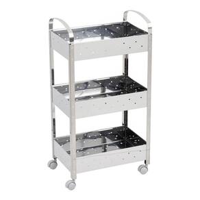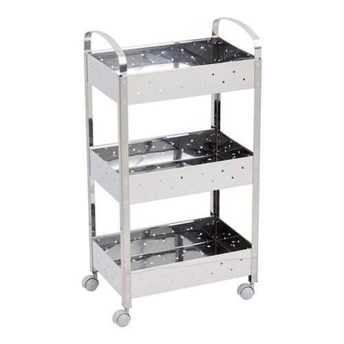 Uma linda maneira de decorar o seu banheiro com três prateleiras inteirinhas para colocar o que você quiser. O organizador para banheiro da Brinox tem um design moderno, que se adapta a qualquer ambiente ou estilo de decoração. Além disso, o produto é super funcional e lhe ajuda a otimizar espaço e organizar a casa. Suas três prateleiras suportam até 50kg e as rodinhas facilitam o seu manuseio. Feito em aço inox, o organizador é resistente, fácil de limpar e tem 40x28x77cm de dimensão. Produto Carrinho Marca Brinox Material Metal Tipo de Material Aço Inox Altura 77 cm Largura 28 cm Profundidade 40 cm Dimensão 77x28x40 cm Acabamento Brilhante Cor Prata Acompanha Porta sem Portas Acompanha Prateleiras Com Prateleiras Quantidade de Prateleiras 3 prateleira s Acompanha Rodas Sim Peso do Produto 3,508 Kg Peso do Produto na Embalagem 4,74 Kg Garantia do Fabricante 3 mes es