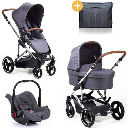Com sistema de travas, o carrinho COMO4 acopla diretamente em sua estrutura, utilizando adaptador, o bebê conforto abc Design risus e o Moisés Carry Cot, muito mais que um carrinho... Vários carrinhos em um
