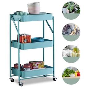 1 Carrinho de Armazenamento Dobrável com 3 Camadas e Rodinhas