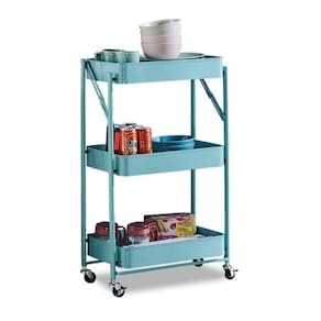 Carrinho Multiuso Dobrável com 3 Cestos Vazados Organização Prática e Compacta