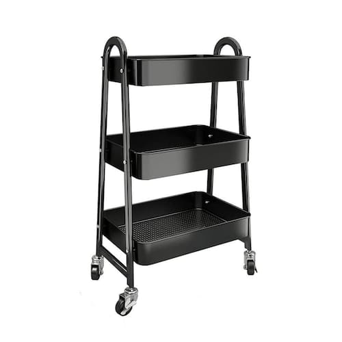 Com três prateleiras amplas e robustas, o carrinho possui bordas e fundo com superfície vazada, facilitando a drenagem de líquidos e suportando até 20 kg por prateleira. Disponível nas cores branco e preto, adapta-se facilmente a qualquer estilo de decoração.
