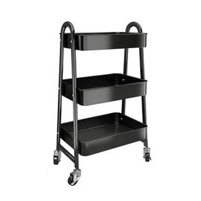 Carrinho Multiuso Organizador Brinquedos Sala Cozinha Manicure 3 Prateleiras Auxiliar Em Aço Profissional Preto