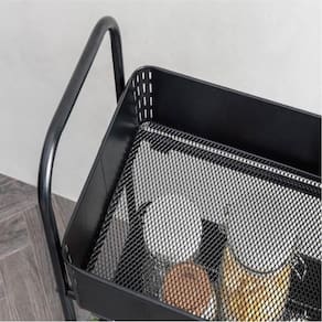 Com três prateleiras amplas e robustas, o carrinho possui bordas e fundo com superfície vazada, facilitando a drenagem de líquidos e suportando até 20 kg por prateleira. Disponível nas cores branco e preto, adapta-se facilmente a qualquer estilo de decoração.