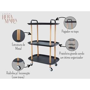 Carrinho multiuso organizador cozinha banheiro 3 prateleiras Cor: preto e bege Prático: ideal para arrumar objetos e otimizar seus espaços. Ele conta com 3 andares que deixam seus itens separados e sempre à vista, facilitando a organização do dia a dia. Com rodinhas e alças: as 4 rodas e as pegas laterais facilitam a movimentação do seu carrinho. Você consegue posicionar em qualquer canto da casa sem fazer esforço. Além disso, a alça ainda deixa a peça mais charmosa. Legal, né