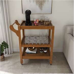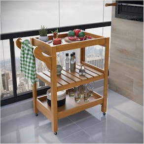 Carrinho Multiuso Server com Rodízios. Mais praticidade e organização para o seu ambiente! O Carrinho Multiuso Server é um móvel versátil, funcional e com estilo atual, ideal para diferentes usos no dia a dia. Com estrutura firme e acabamento de qualidade, ele se adapta facilmente a ambientes internos como cozinha, sala, escritório, recepção ou copa, ajudando na organização de utensílios, alimentos, bebidas não alcoólicas, objetos decorativos e itens diversos. -Três prateleiras de madeira com ótima capacidade de organização -Tampo superior e inferior com laterais removíveis, facilitando a limpeza -Prateleira central ripada com visual leve e moderno -Rodízios resistentes de 4 cm, proporcionando mobilidade e praticidade -Produzido em madeira Pinus, material de excelente durabilidade -Design versátil que combina com diferentes estilos de ambiente -Estrutura estável e funcional -Puxador lateral para facilitar o deslocamento -Suporta até 40 kg distribuídos