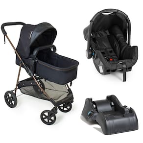 O Modelo Napoli G22 Preto Cobre se destaca pela estrutura robusta e pelo sistema de encaixe inteligente. O bebê conforto acopla diretamente ao chassi do carrinho ou à base para carro, garantindo transições rápidas e seguras entre casa, veículo e passeio, sem comprometer a estabilidade.