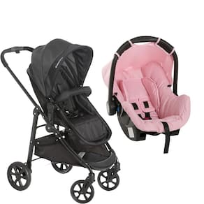 Carrinho de bebê olympus new black até 15kg e bebê conforto grid rosa 0 a 13 kg - galzerano
