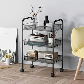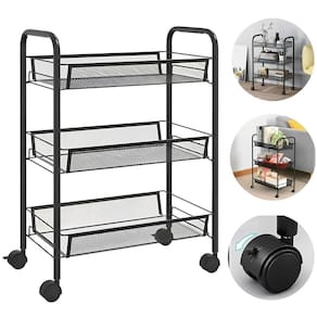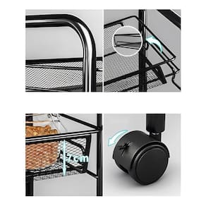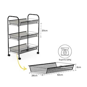 Uma linda maneira de decorar e organizar a sua cozinha, sala, banheiro ou o seu quarto de forma criativa. Nosso organizador possui um design moderno, que se adapta a qualquer ambiente ou estilo de decoração. Além disso, o produto é super funcional e lhe ajuda a otimizar espaço e organizar a casa. ESPECIFICAÇÕES: - Material: METAL - Tipo: Multiuso/Cozinha - Divisórias: 3 Prateleiras - Cor: Preta Dimensões Aproximadas do produto: - Altura: 64cm - Largura: 45cm - Comprimento: 26cm CARACTERÍSTICAS: - Praticidade e resistência em seu design - Altamente durável - 3 prateleiras - Com 4x rodinhas 2x duas delas com freio/trava Marca: Kadê