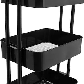 O Carrinho Organizador Versatile é multiuso e confeccionado 100% em ferro, com capacidade de 8,5 litros em cada bandeja, totalizando 25,5 litros de capacidade. O produto acompanha manual de instrução para montagem.