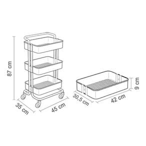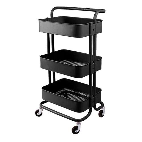 O carrinho multiuso com pintura epóxi resistente em aço PRETO, possui 3 prateleiras com bordas e fundo de superfície vazada que suportam até 10kg cada prateleira. Seu fundo possui micro furos que eliminam eventuais resíduos líquidos. O carrinho possui alça e rodízios, se tornando prático para locomoção e decorativo em seu ambiente. Ideal para diversos ambientes e para seu negócio como: sala, banheiro, quarto, lavanderia, bar, quarto de criança, salão de beleza, oficina e escritório. Basta montar e começar a organizar.CARACTERÍSTICAS:Medidas: Largura 34cm x Altura 83cm x Comprimento 43cmEspaço entre as prateleiras: 25 cm a 30cmCapacidade de cada prateleira: Até 10 kg cadaMaterial: Aço carbonoPeso: 4,5 KgMarca: MAXIME UTILIDADESOBSERVAÇÃO: Todas as cores podem ter variações de telas e monitores devido ao brilho e contraste.Dicas:1º Dica: Não utilizar materiais abrasivos, lã de aço, esponjas ásperas, solventes ou produtos químicos corrosivos como cloro ou água sanitária;2º Dica: Para limpeza do mesmo utilizar pano levemente úmido, após pano seco;3º Dica: Pode ser utilizado em banheiros, quartos, salões de beleza, lavanderia ou escritório.