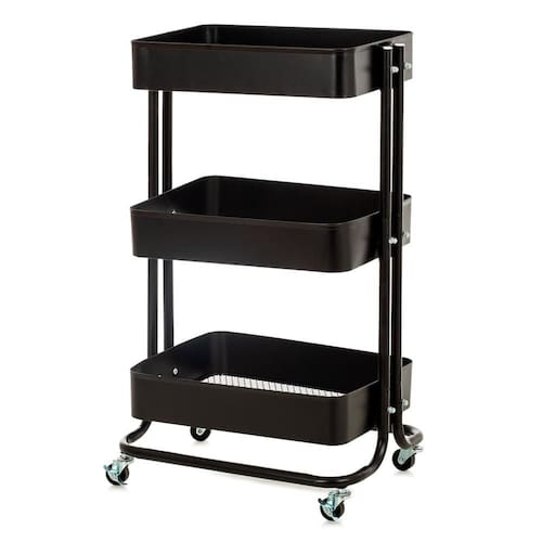 Carrinho Organizador Multiuso ANM6077 Anima Office 3 Cestos Fixos Aço Preto