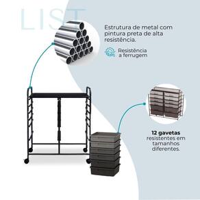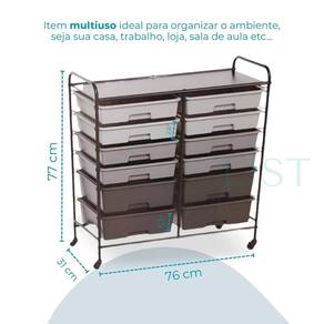 Carrinho 12 gavetas NOVO Preto Organizador com Rodas e 12 Gavetas - Praticidade e Versatilidade para Qualquer Ambiente Ideal para manter tudo em ordem, seja em casa, no escritório, na loja, sala de aula ou espaços multiuso. Este carrinho organizador possui 12 gavetas plásticas semitransparentes, que facilitam a visualização e o acesso rápido aos itens armazenados. Perfeito para guardar ferramentas, acessórios, documentos, materiais de papelaria e muito mais. Com dois tamanhos de profundidade, acomoda facilmente objetos pequenos e maiores: