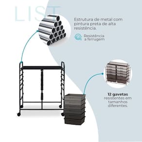 12 gavetas resistentes para múltiplas finalidades de organização;
