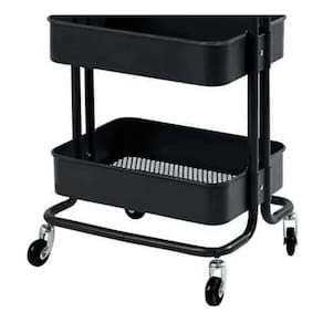 O carrinho multiuso com pintura epóxi resistente em aço 5 cores: preto, branco, turquesa, cinza e rosa possui 3 prateleiras com bordas e fundo de superfície vazada que suportam até 10kg cada prateleira. Seu fundo possui micro furos que eliminam eventuais resíduos líquidos. O carrinho possui alça e rodízios, se tornando prático para locomoção e decorativo em seu ambiente. Ideal para diversos ambientes e para seu negócio como: sala, banheiro, quarto, lavanderia, bar, quarto de criança, salão de beleza, oficina e escritório. Basta montar e começar a organizar.