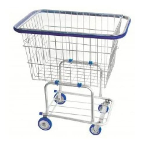 Produto confeccionado em aço carbono SAE 1020 galvanizado, com borracha de proteção na borda superior, com cantos arredondados para melhor manipulação do carrinho.